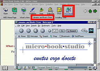 Having chosen your preferred browser or accepted Internet Explorer as the default browser, by clicking at Donwload Icon at Icons Bar, or by clicking at Libraries and Book Store link at Address Bar, Micro Book Studio will open selected browser and you may download libraries you want to read to your computer.